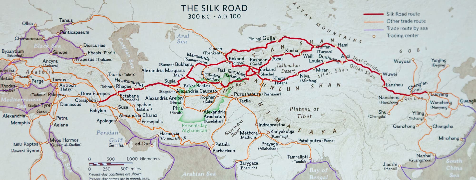 Caravans have been travelling the silk road for over 2000 years. From wiki the silk road or silk route is an ancient network of trade routes that were central to cultural interaction through regions of the asian continent connecting the west and eastfrom china and india to the mediterranean sea silk road. It was also a key point of the route, where the trade road divided into three main branches: Dealings on the silk road remained active until the late middle ages (1453). What city is western of.
